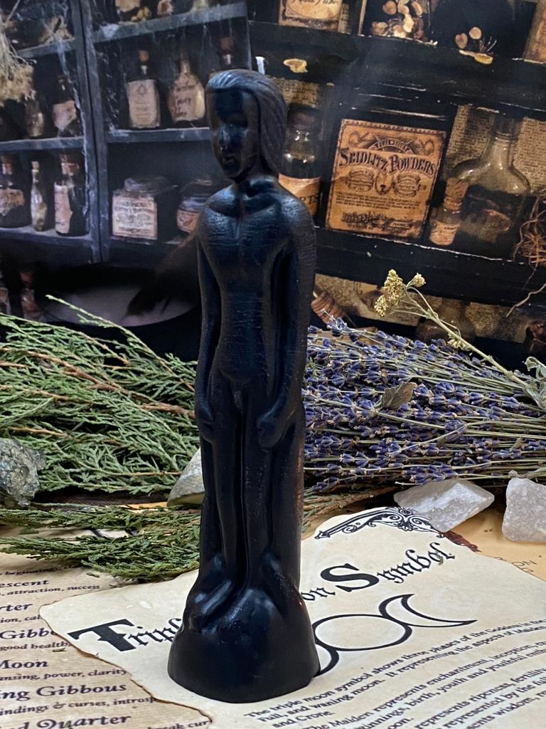 Fiecare lumânare este turnată manual, cu ceară neagră consacrată și amestecuri de plante, săruri și uleiuri ritualice alese pentru protecție și eliberare. Arderea lor stabilește un scut subtil între tine și ceea ce îți consumă puterea din umbră.